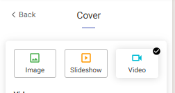 There, you'll be able to choose the type of cover you'd prefer for your website: Still Image, Slideshow, or Video.